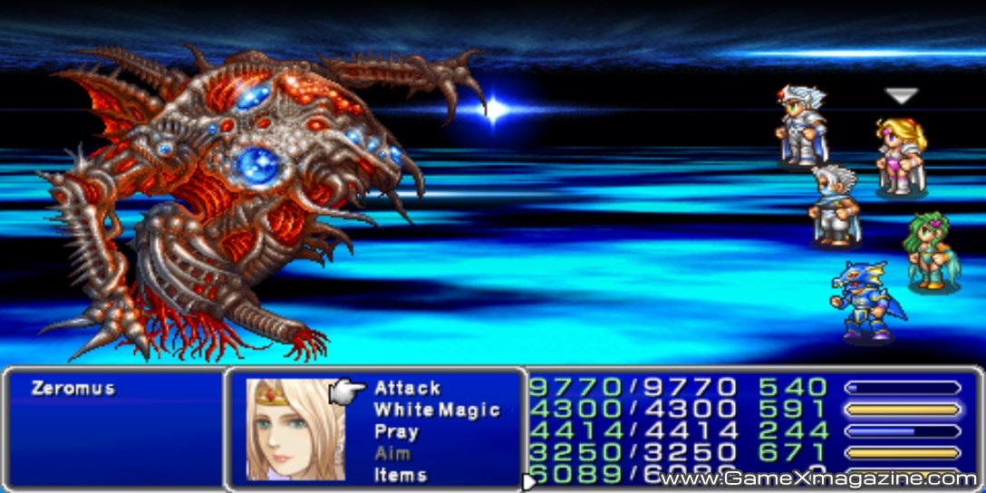 ดอกแรกให้ใช้ไอเท็ม “คริสตัล” ที่กอลเบซให้มาก่อนเลย.. มันจะร้องกรี๊ดเป็นผีโดนข้าวสารเสก พร้อมกับเปลี่ยนเป็นร่างสุดท้ายท้ายสุดของมัน.. ท่าหลักๆที่มันจะใช้ก็ “บิ๊กแบง” กับ “แบล็คโฮล”.. ก็ให้โรซ่าคอยใช้เวทย์คูราจาเติมพลังให้ทุกคนเรื่อยๆทุกเทิร์น ส่วนเพื่อนๆคนอื่นก็โจมตีไปตามที่ตัวเองถนัด.. เวทย์น้ำแข็งบริซาก้าเข้าเน้นๆดีนักแล.. กระทืบไปเรื่อยๆ.. ซักพักก็เรียบร้อยครับ ไม่ยากอย่างที่คิด…..